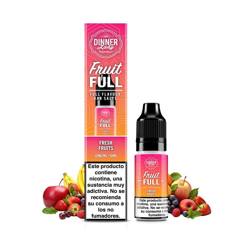 E-liquid con sales de nicotina sabor frutas frescas.