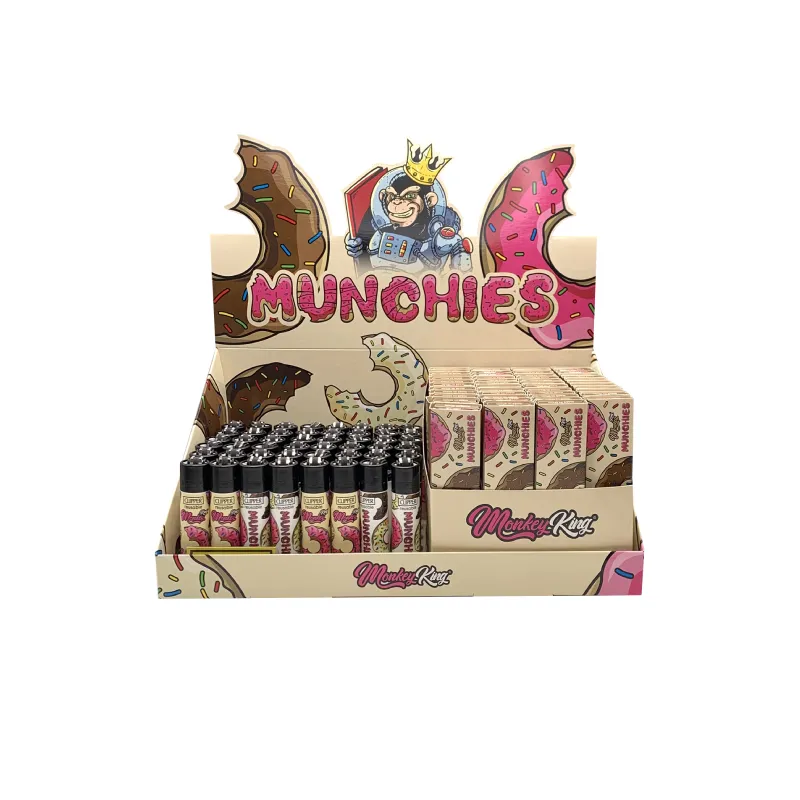 Kit de 32 hojas, 32 tips y 1 encendedor Clipper. Papel King Size Slim (108 mm) unbleached, Filter tips pre-cortados unbleached y encendedores exclusivos Clipper Munchies.