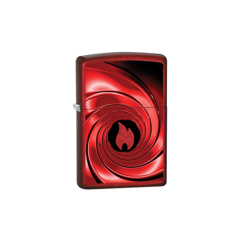 El diseño Color Image en forma de remolino con el característico icono de la llama parece fundirse con el encendedor Candy Apple Red que hay debajo.